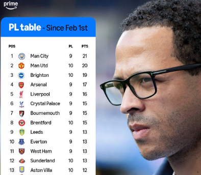 阿森纳全程领跑!曼城本赛季英超积分从未领先过阿森纳