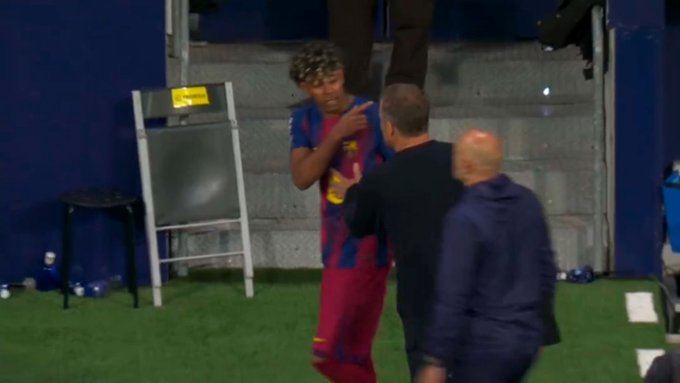 亚马尔未参与庆祝绝杀,赛后离场时情绪明显不满