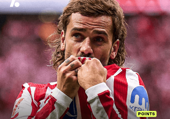 格列兹曼通过进球帮助球队获得133个西甲积分,历史第三多