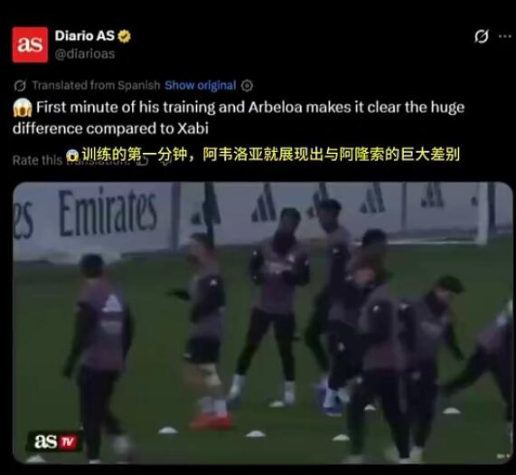 阿斯晒视频:训练第一分钟,阿韦洛亚展现出与阿隆索的差别