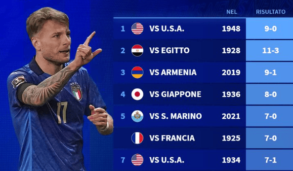 意大利队史取得最大比分胜局:9-0美国、11-3埃及、8-0日本