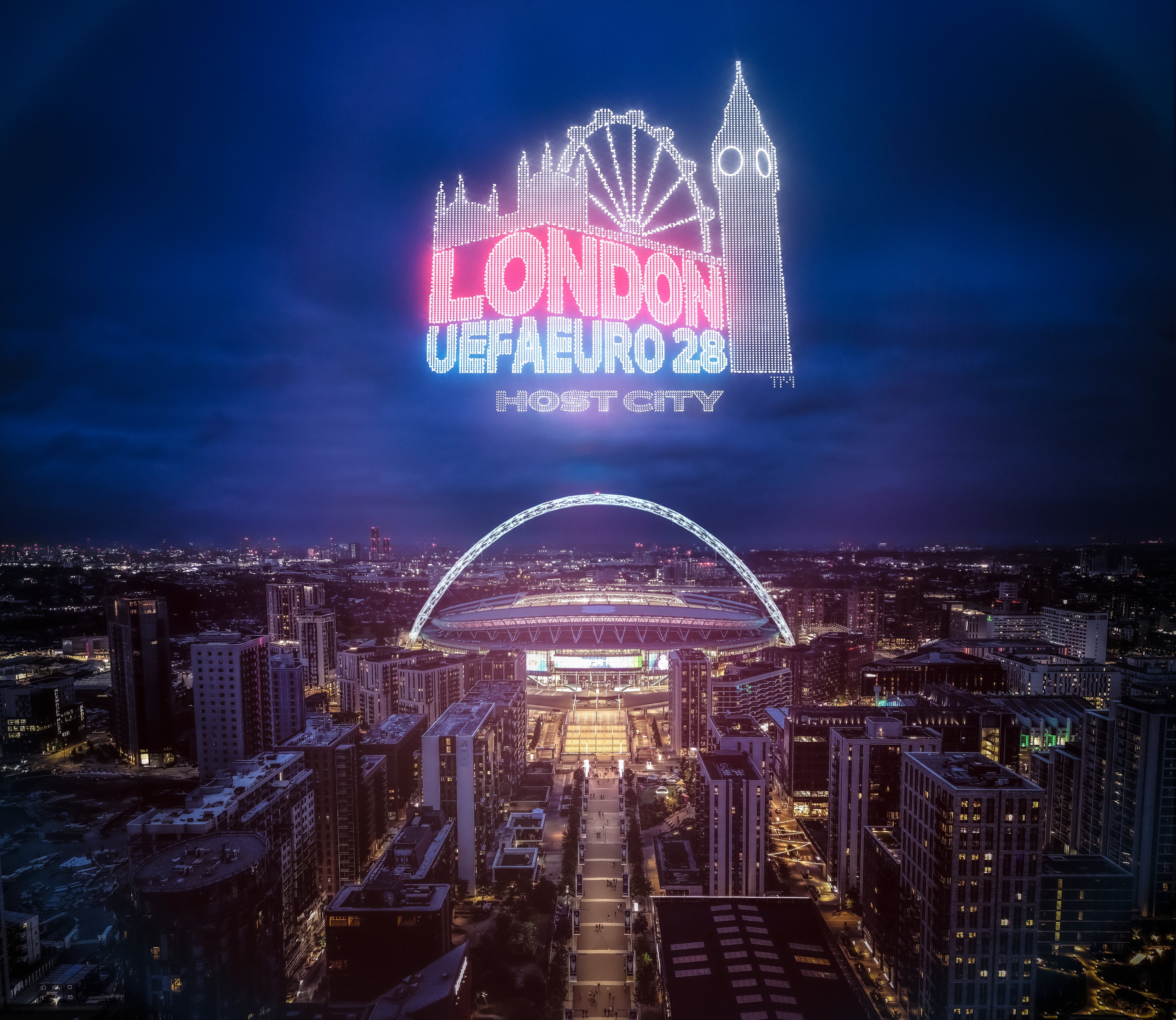 承办28欧洲杯半决赛决赛,温布利上空上演精彩无人机表演
