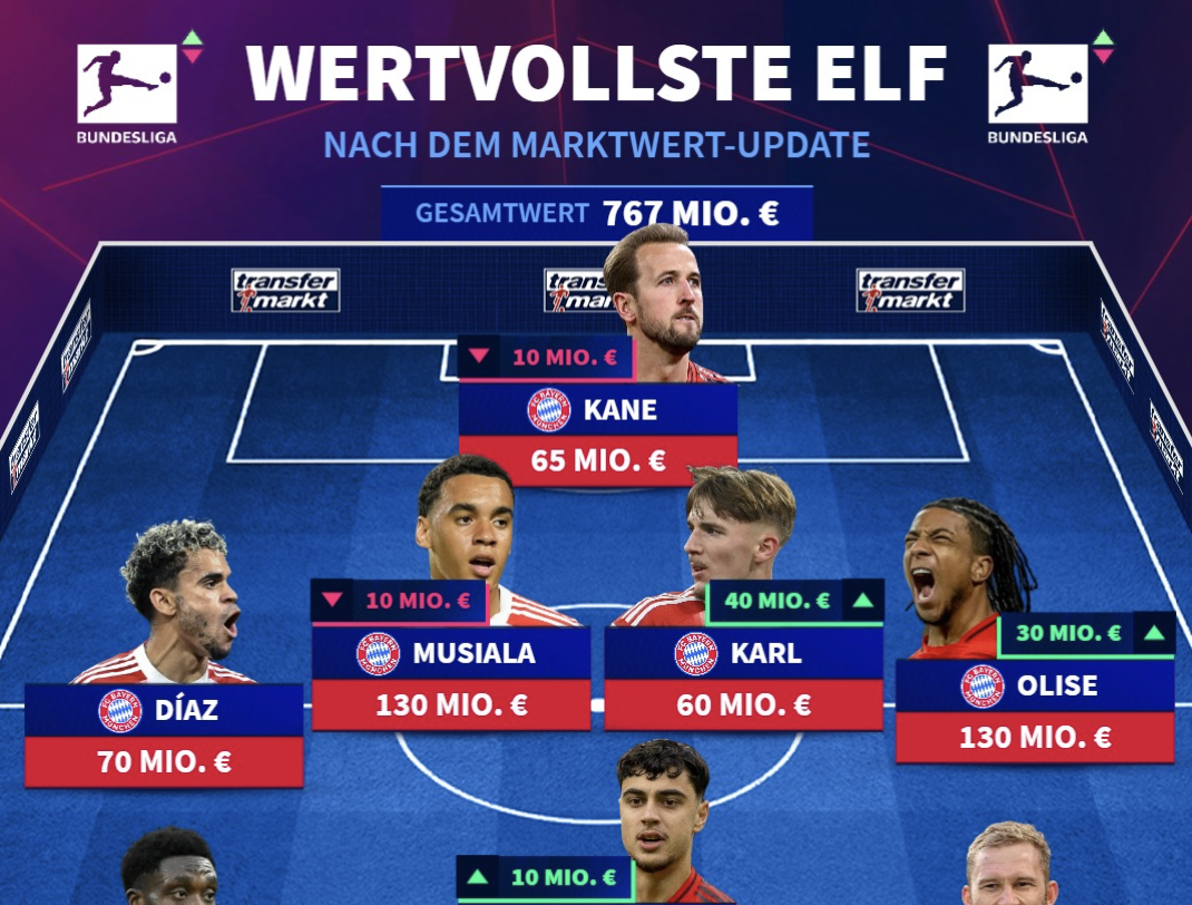 德甲身价12月更新后最贵阵容:穆西亚拉、奥利塞领衔
