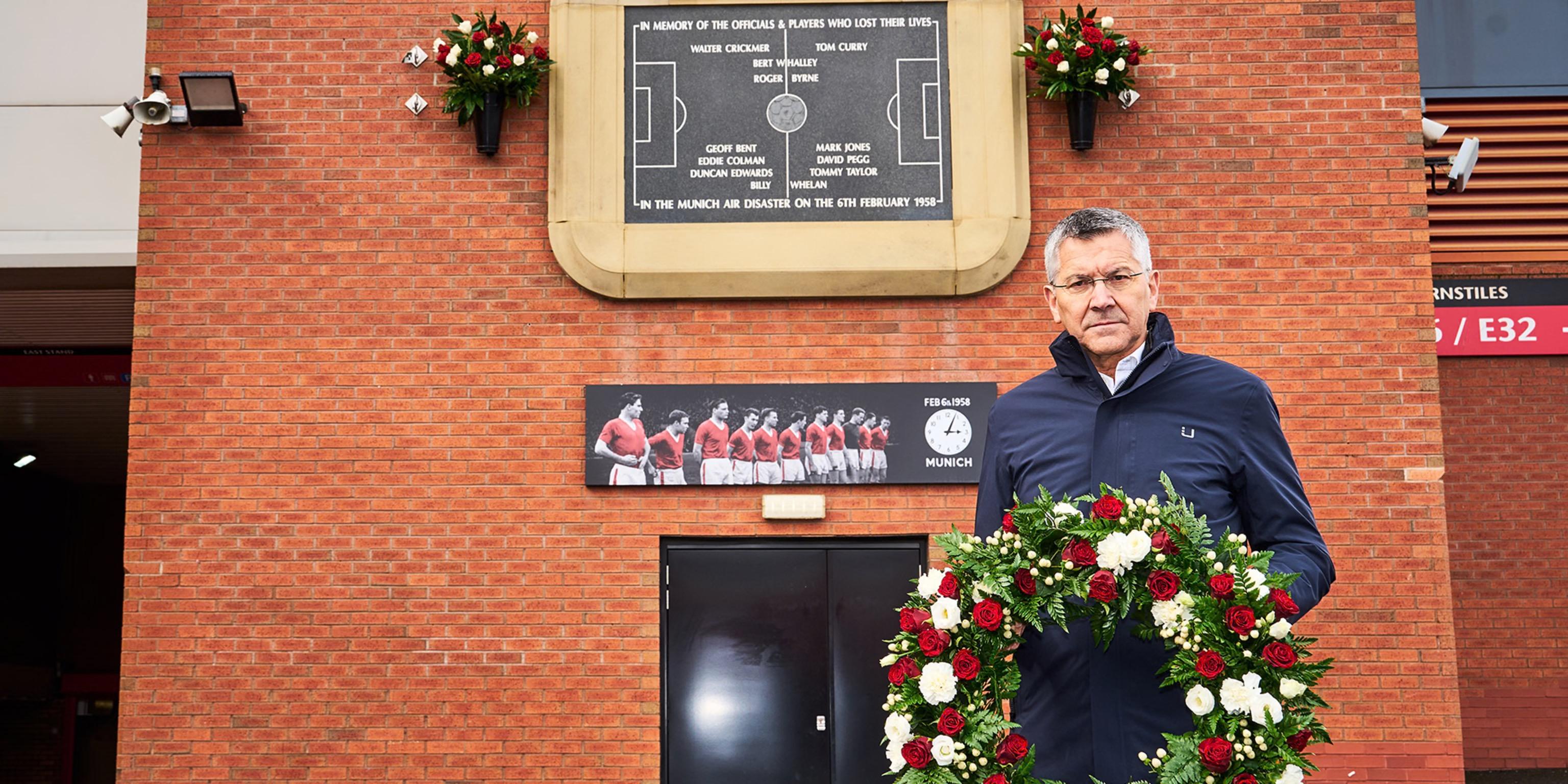 铭记慕尼黑空难,拜仁主席海纳于老特拉福德献花悼念遇难者
