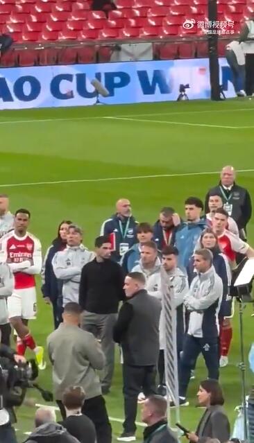 谢尔基领完联赛杯奖牌后,在失落的阿森纳球员前面自拍