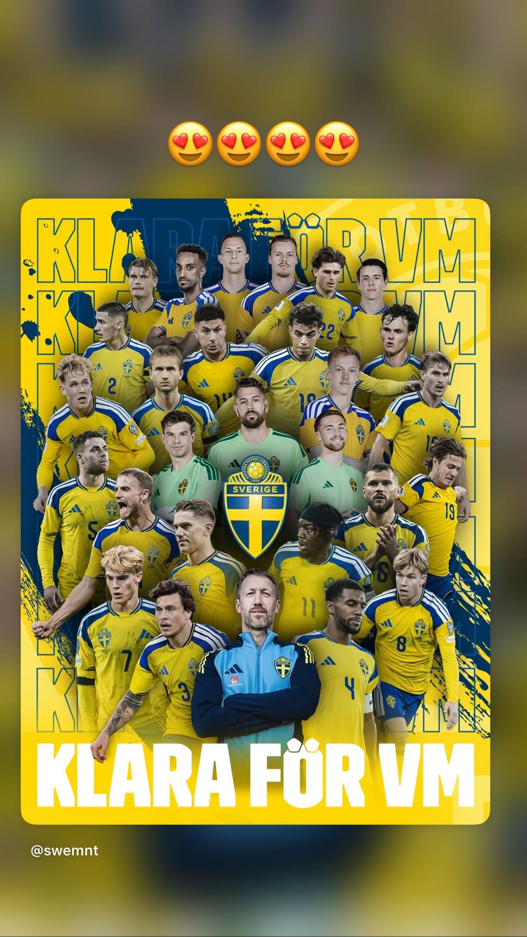 瑞典晋级世界杯,伊萨克社媒狂欢:耶!传奇!一起加油