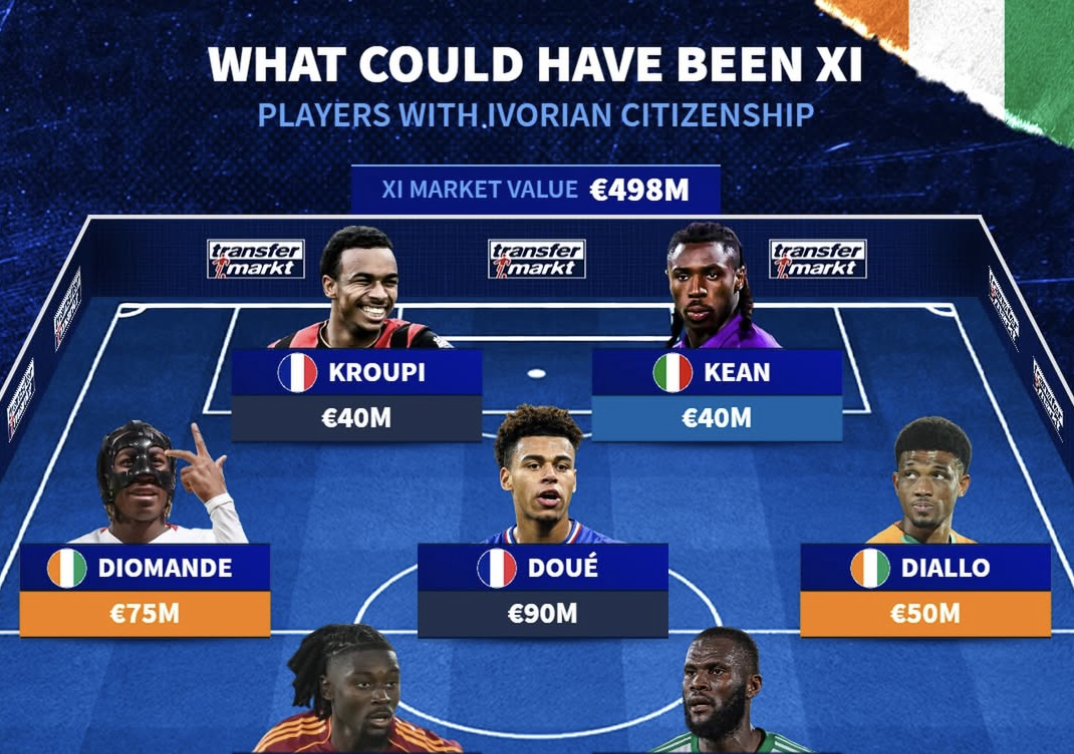 科特迪瓦籍球员身价最高阵容:杜埃9000万领衔4.98亿豪阵