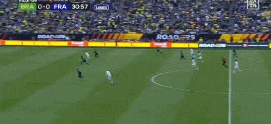 姆巴佩接直塞,面对门将挑射破门,法国1-0巴西