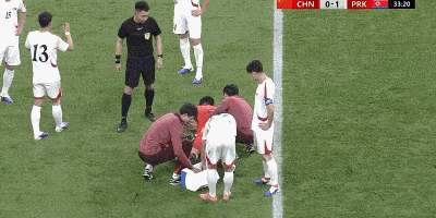 彭啸背部受伤无法坚持,贺一然替补登场将其换下