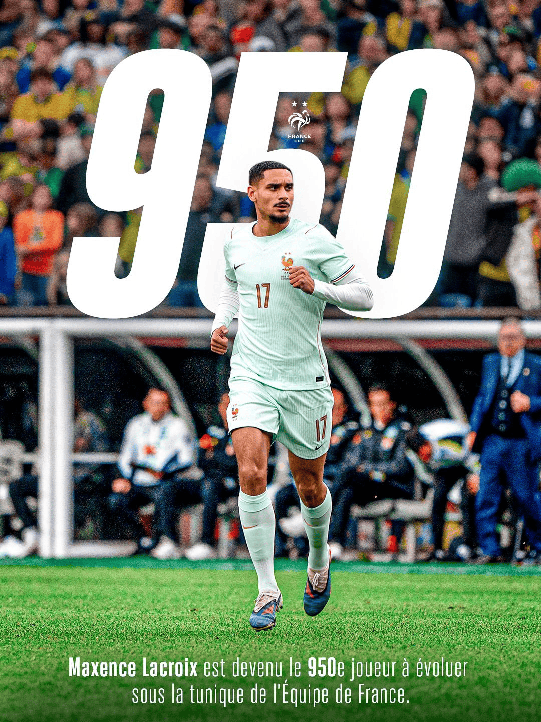 法国国家队恭喜拉克鲁瓦成为国家队第950位球员