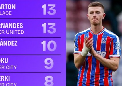 本赛季英超共3名球员送出至少10次直塞球:B费、沃顿、恩佐