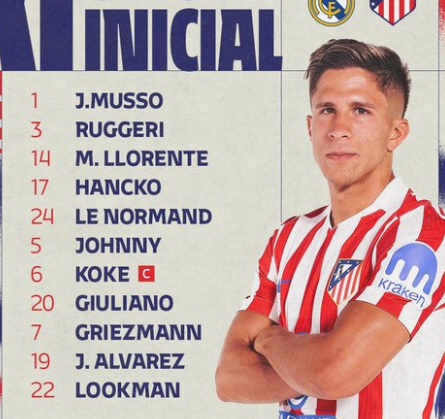 西蒙尼脚后跟做球卢克曼禁区得球低射破门!马竞1-0皇马