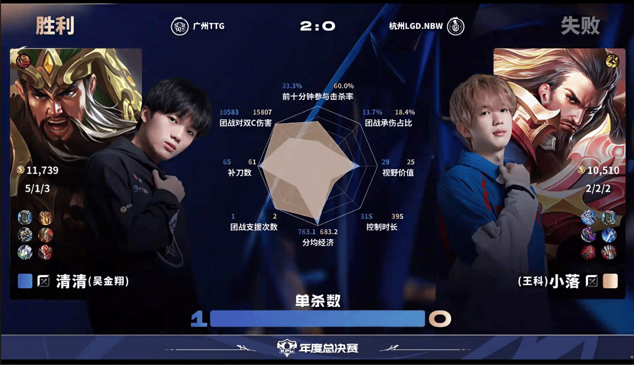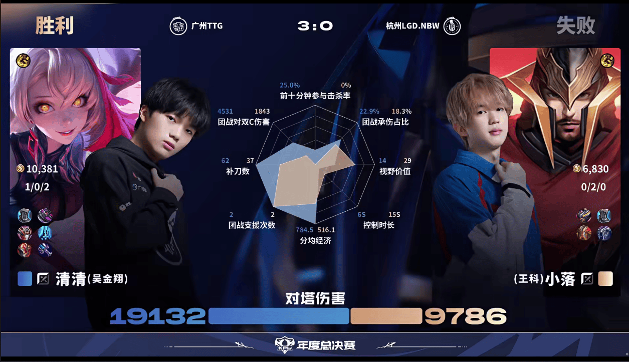 TTG/LGD第二局数据对比:小雪后羿全方位包围小涵孙尚香