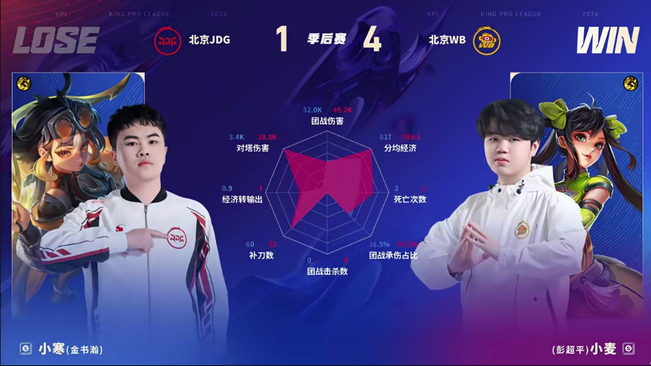 北京JDG 1-4 北京WB,本场选手表现你打几分?
