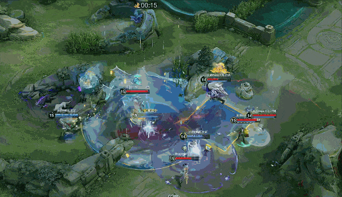 鲁大想先手开团被大帅一诺各用技能躲开,钟意收下绝心一血