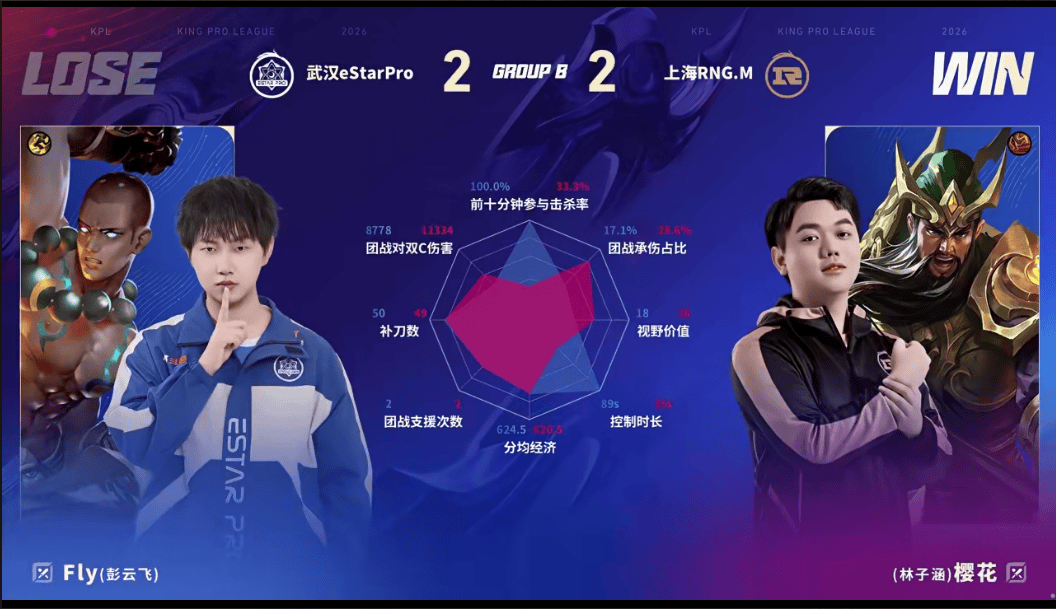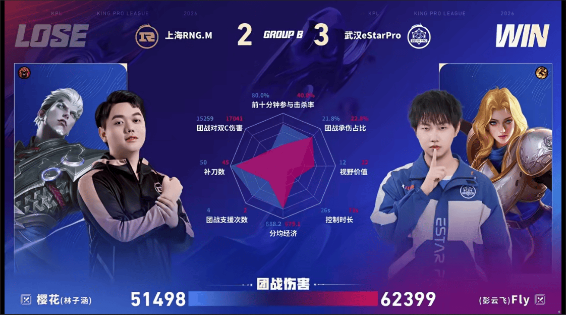 RNG.M/eStar第四局数据对比:极光完美数据输出爆炸