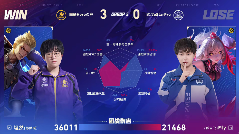 南通Hero久竞 3-0 武汉eStarPro,本场选手表现你打几分?