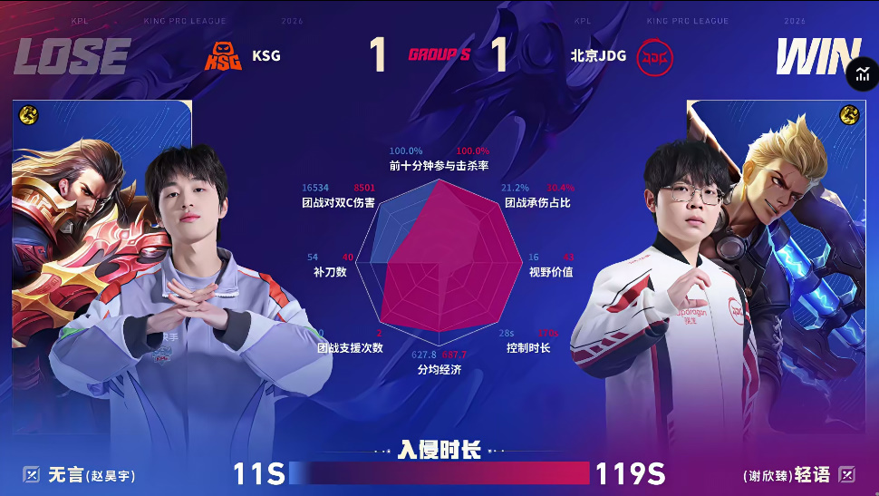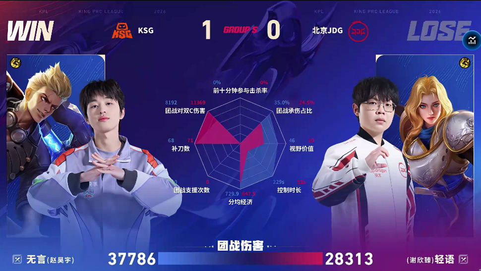 KSG/JDG第一局数据对比:无言狂铁团战伤害高达三万七