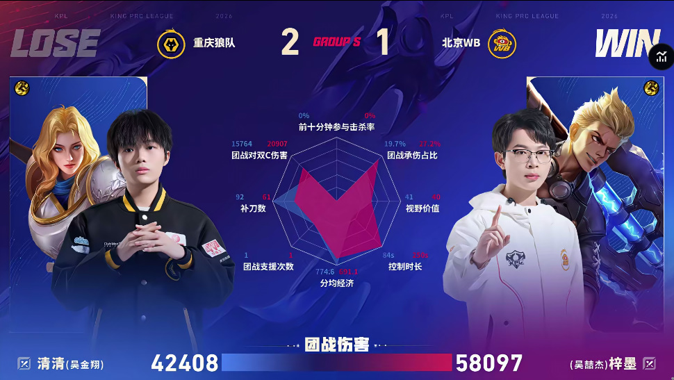 北京WB 2-3 重庆狼队,本场选手表现你打几分?