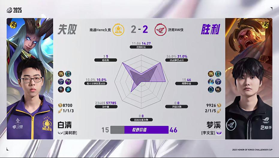 RW/Hero第四局数据图:梦溪苏烈视野价值46高于白清东皇