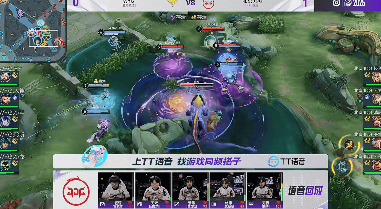 JDG/WYG第一局语音回放:哪吒脱节了,击飞了,点塔一波,没闪的狗子