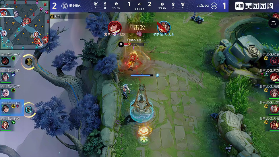 西施率先发难反被夏侯惇反打,JDG最终击杀情久上野