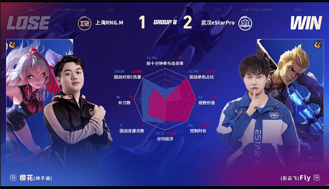 eStar/RNG.M第三局数据对比:Ming女娲输出拉满