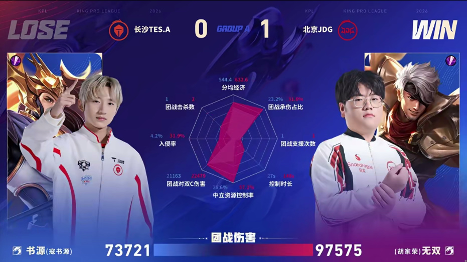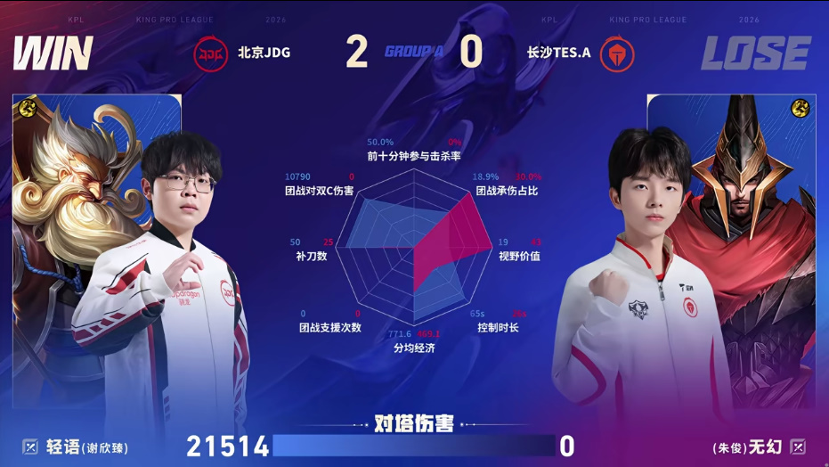 JDG/TES.A第一局数据图:无双夏侯惇全包围书源杨戬