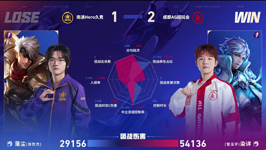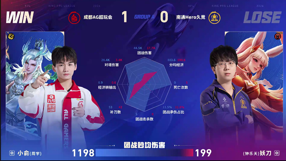 AG/Hero第一局数据图:小俞敖隐全包围妖刀公孙离