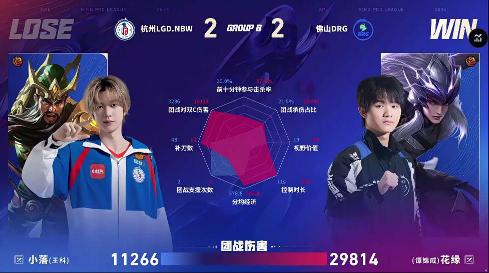 LGD/DRG第三局数据对比:小久艾琳数据全面包围梦岚蚩姹