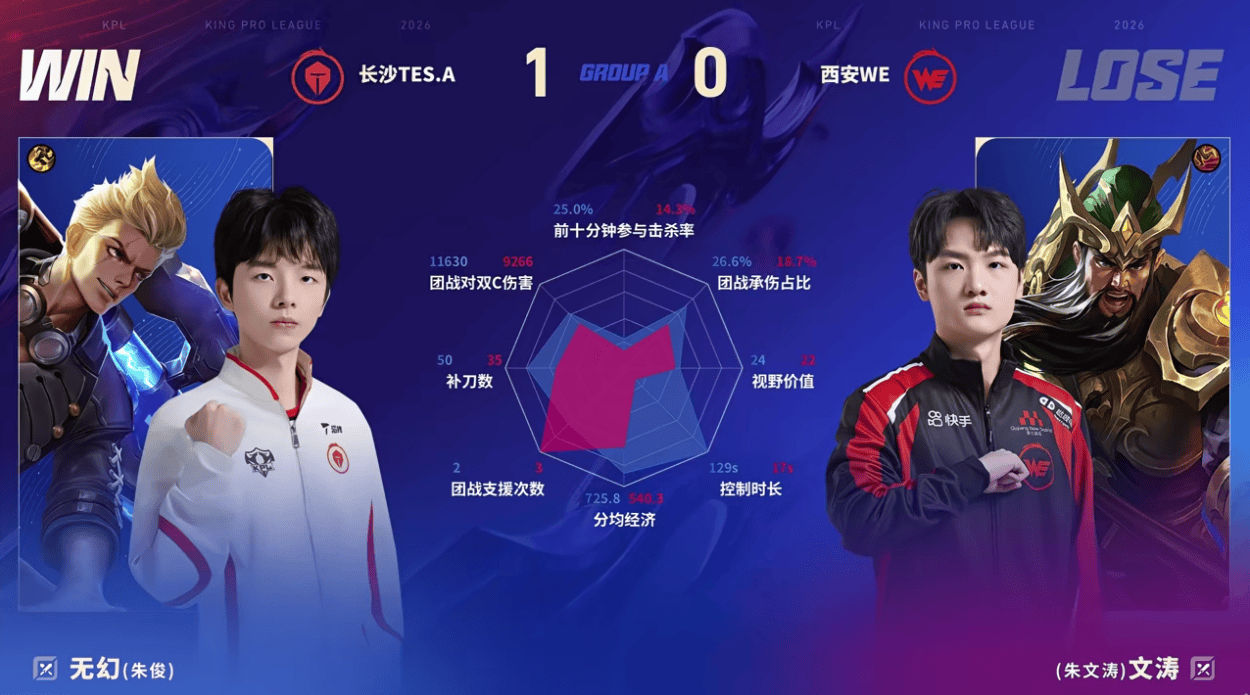 TES.A/WE第一局数据对比:帆帆廉颇开团成功率百分百