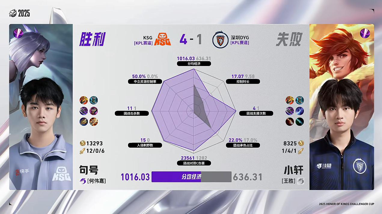 KSG/DYG第5局数据对比:句号镜纯粹六边形全维度压制小轩