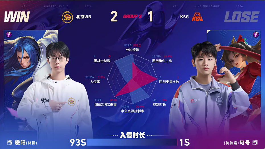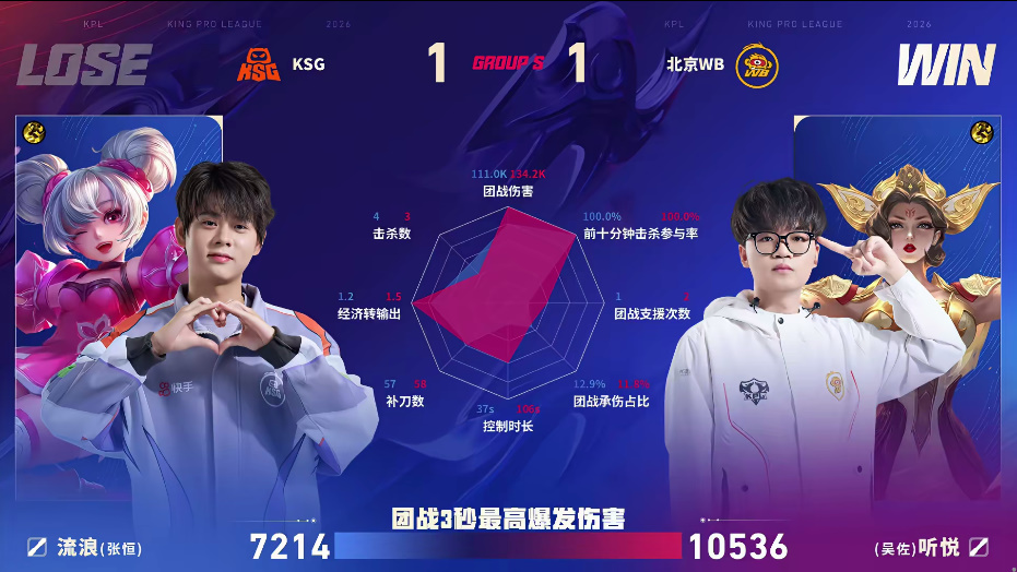 北京WB 0-1 KSG,本场选手表现你打几分?