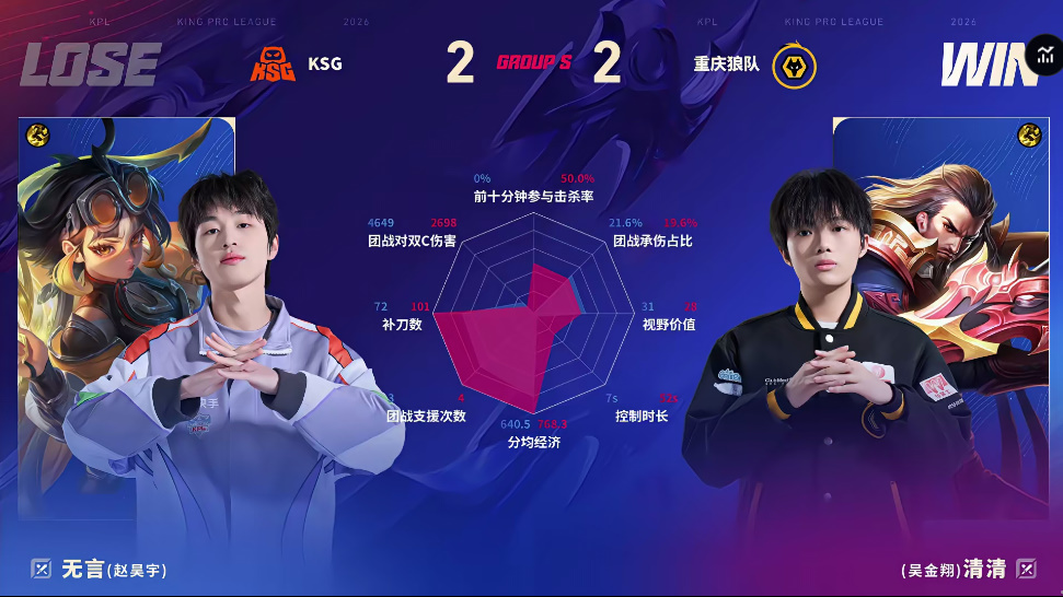 狼队 2-2 KSG:清清曹操关键抢龙,狼队鏖战到底拖进决胜局