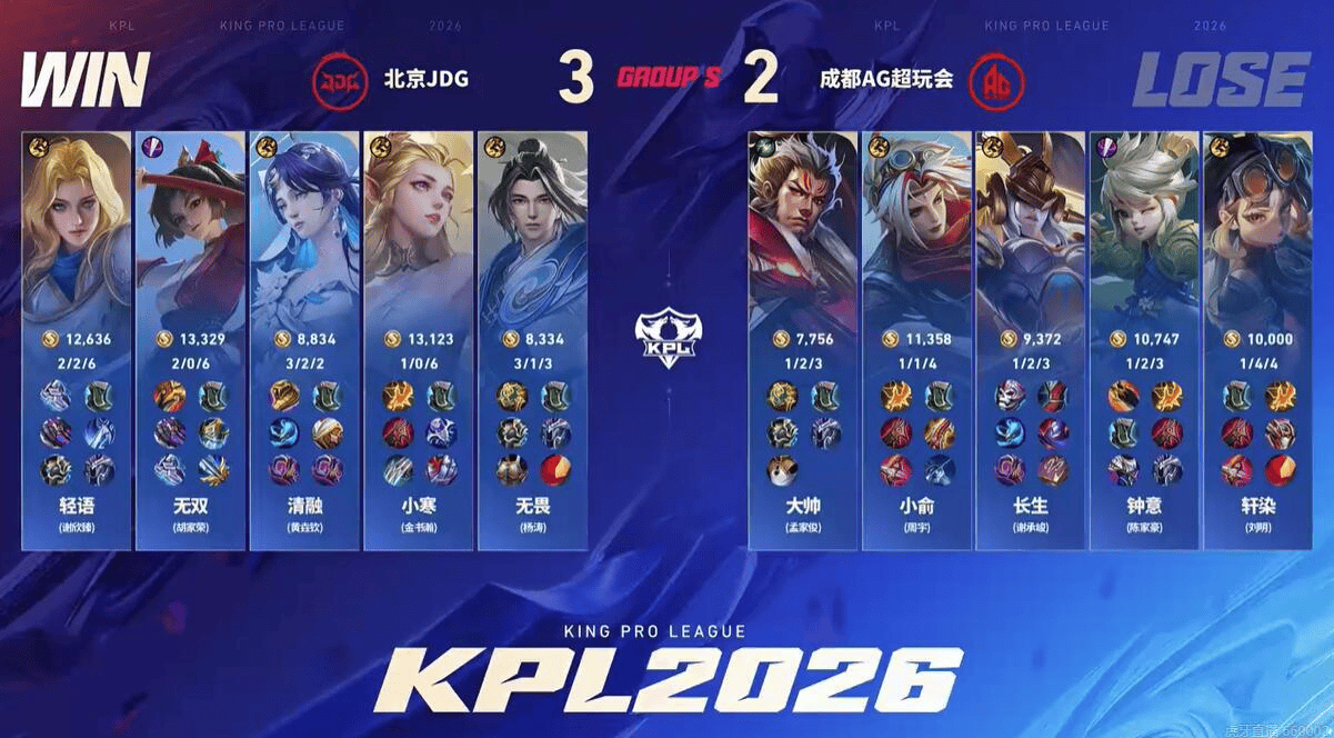 成都AG超玩会 2-0 北京JDG,本场选手表现你打几分?
