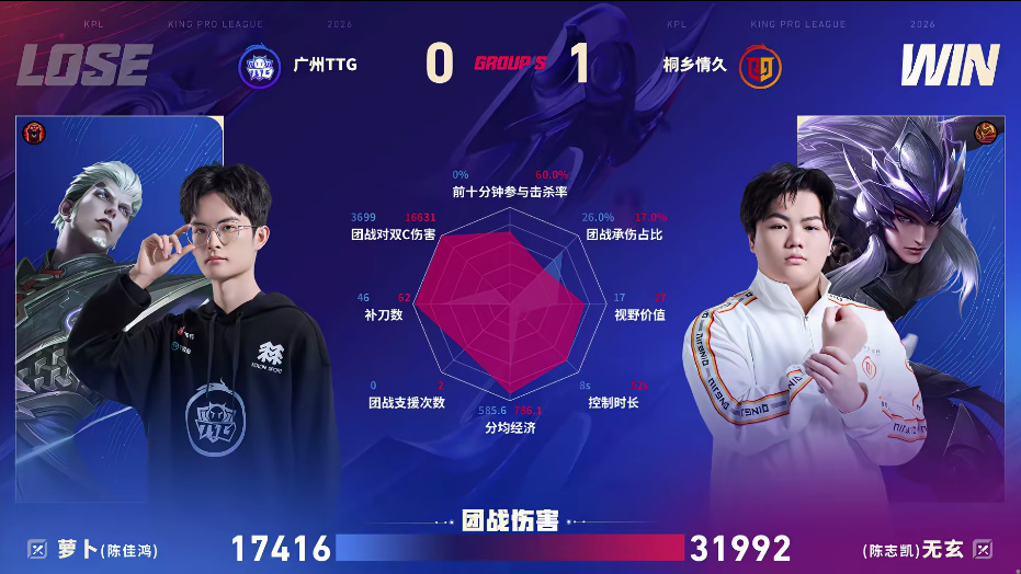 TCG/RNG.M第一局数据对比:奕雨艾琳团战秒均伤害高达1051