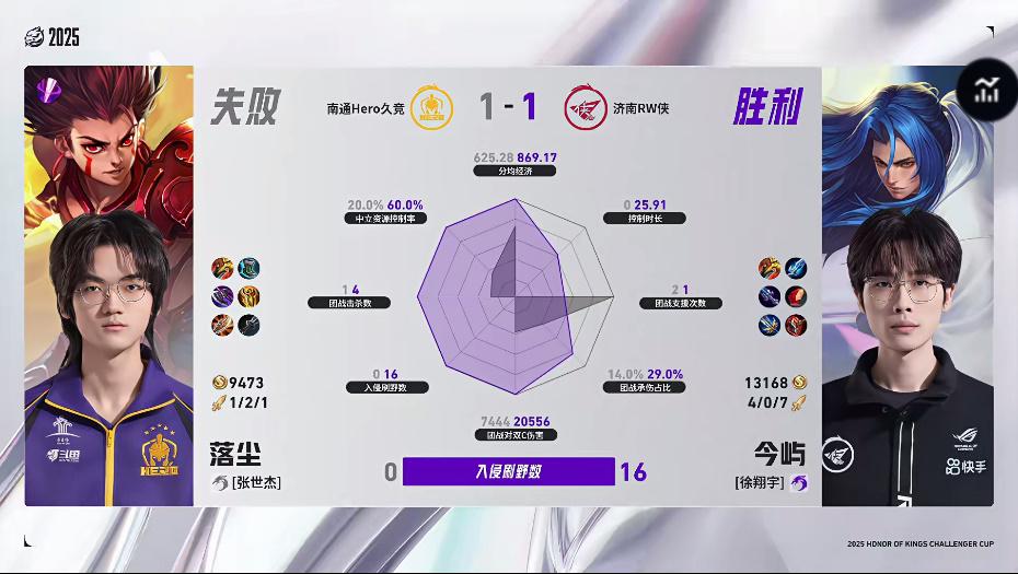 RW/Hero第二局数据图:今屿几乎包围落尘,五项数据拉满