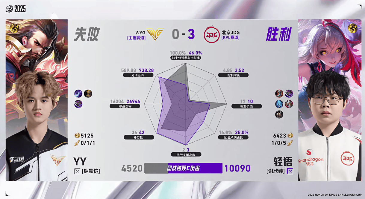 JDG/WYG第三局数据对比:无双大司命和绝意苍多数据包围对位