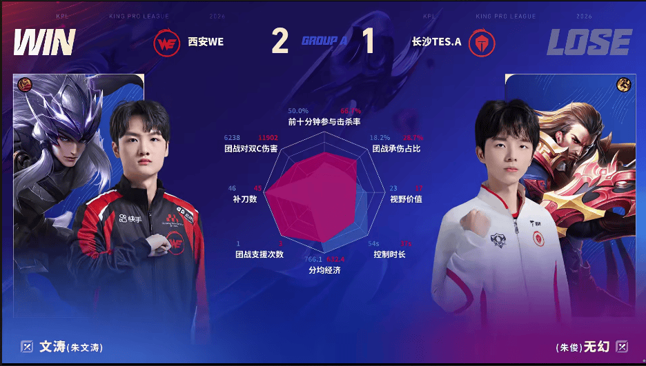 WE/TES.A第三局数据对比:昭珏蚩奼团战秒均伤害1038!