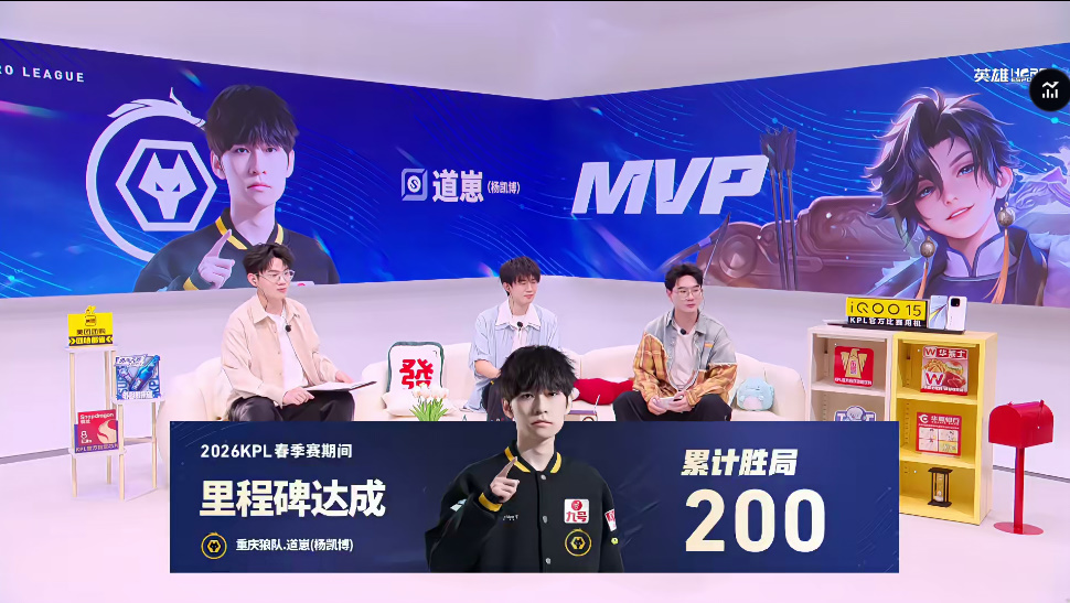 第五局比赛后,重庆狼队.道崽达成里程碑:200累计胜局