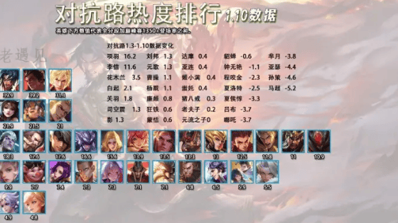巅峰赛开启第一天,13名英雄调整数据汇总,马超涨幅吓人