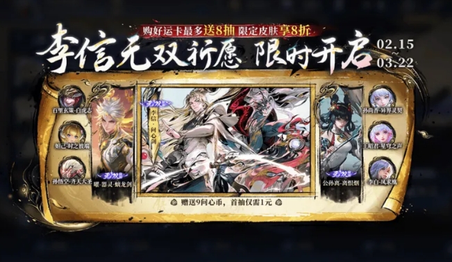 李信无双实测:先用好运卡送的4抽+10点券首抽试运气