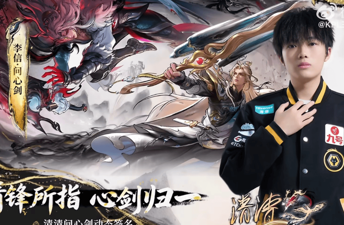 李信-问心剑全新皮肤邀请双冠对抗路清清选手进行签名
