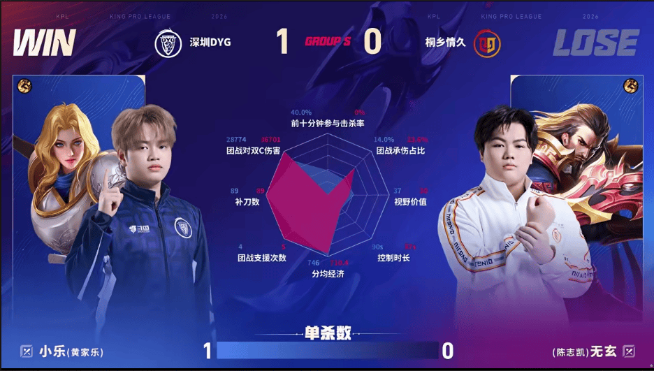 DYG/情久第一局数据对比:小轩大司命豪华数据带飞全场