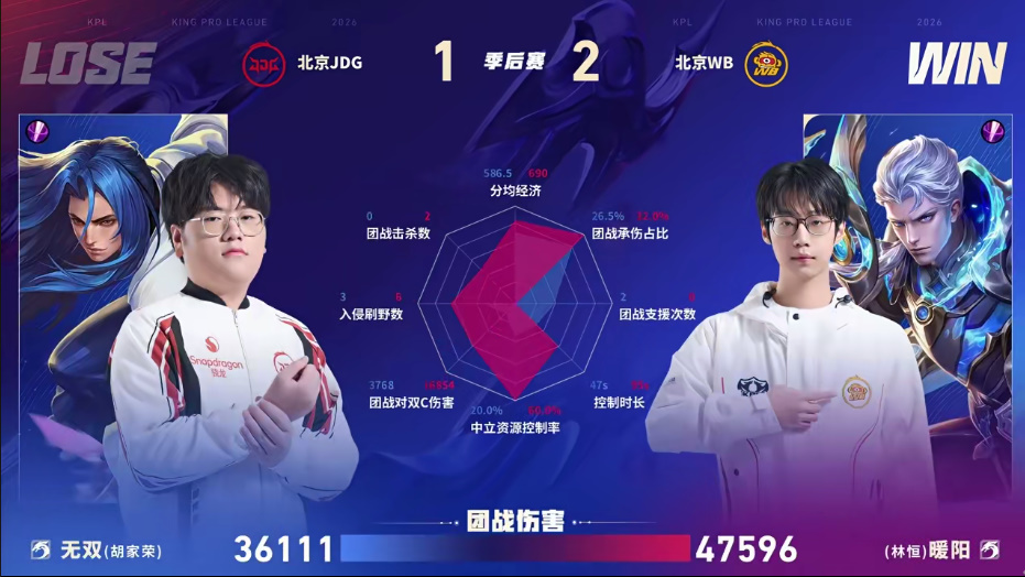 北京JDG遗憾止步2026KPL春季赛季后赛败者组第三轮