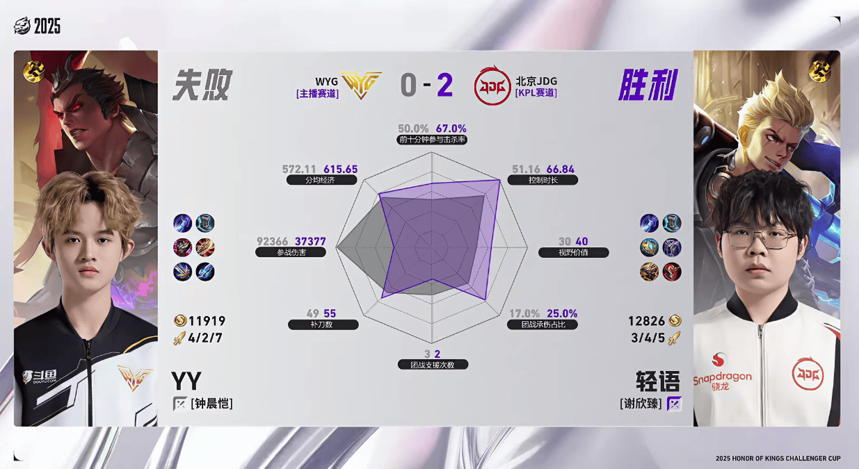 WYG 0-1 北京JDG,本场选手表现你打几分?