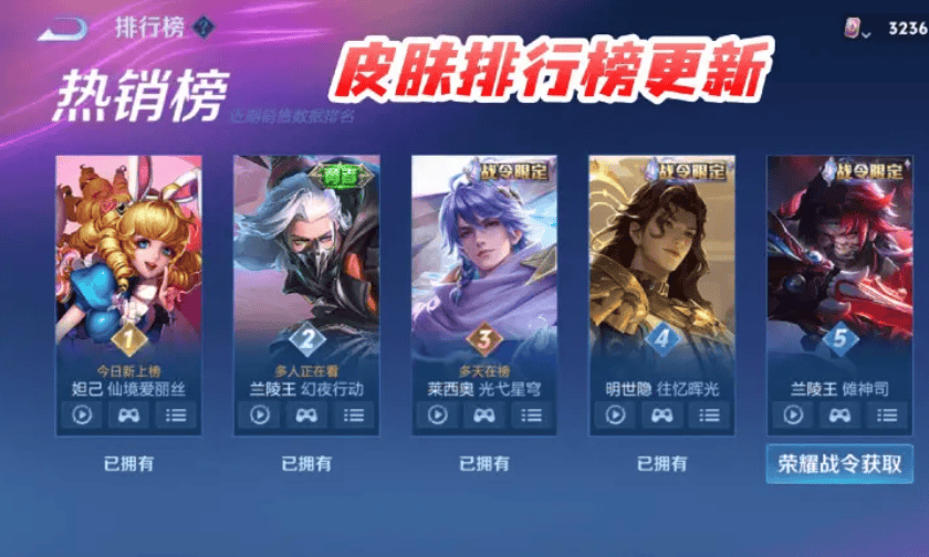 皮肤热销榜:妲己仙境爱丽丝成为第一,1元通行证成热门