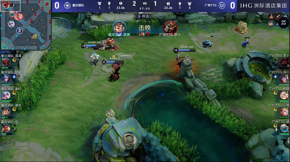 涵鲁班大师率先发难,后续双方补上狼队打出1换2