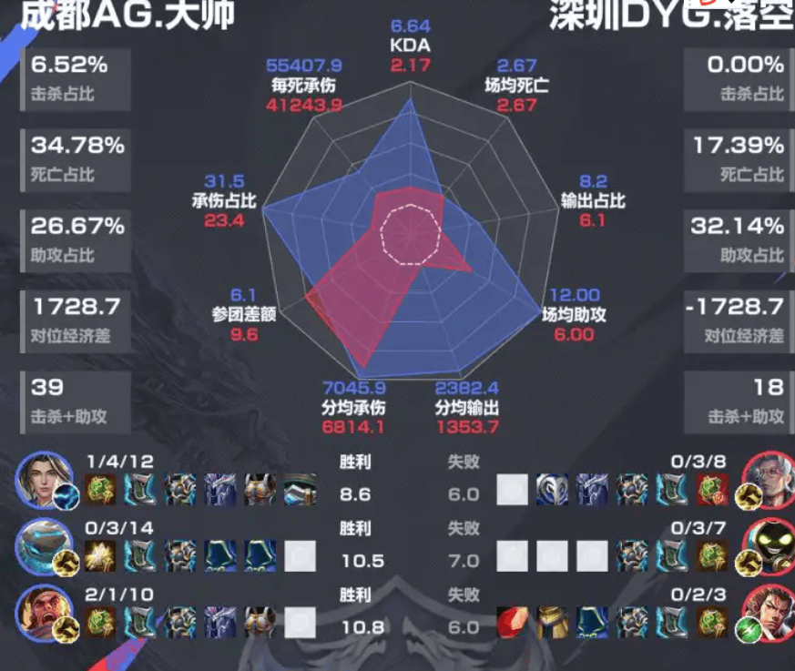 AG 3-0 DYG赛后雷达图,哪组对位差距最大?