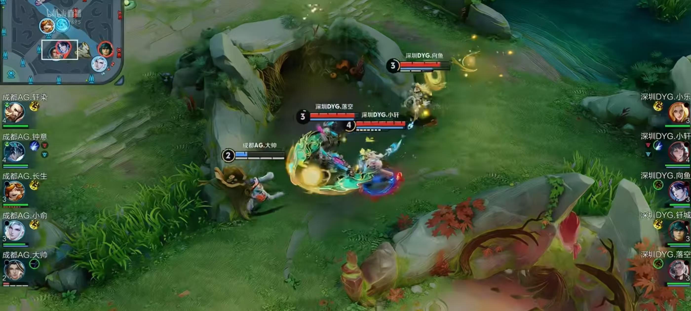 DYG进蓝被消耗,随后AG众人追击打出1换3